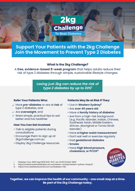 “I have been referring patients who need assistance to make lifestyle changes to the 2kg Challenge, and they have found the program very useful in supporting them to achieve a 2kg (or more) weight loss. It is great that there are no cost barriers to getting care and that patients get regular support to help keep them motivated. My patients have loved the program and the improvements in their health, and it is a great tool for a busy GP to help improve overall health and wellbeing.”